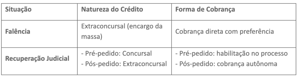 - Débitos posteriores ao pedido de recuperação judicial: são classificados como extraconcursais, podendo ser cobrados diretamente.