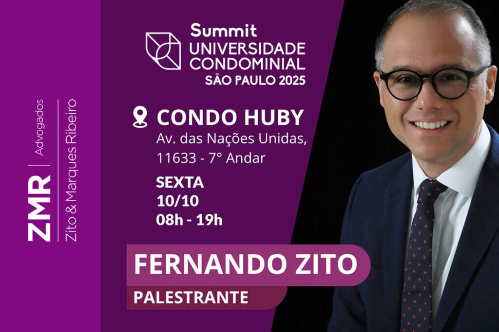 Foi a vez de São Paulo (no Condo Huby) receber o evento que já é sucesso em várias cidades do Brasil! Na sexta, dia 10/10/25, Fernando Zito , sócio da ZMR Advogados , esteve com mais 20 especialistas de renome nacional para debater temas controversos e inovadores da gestão condominial. Um evento voltado para síndicos, administradoras e profissionais que vivem o dia a dia dos condomínios! Ao final do dia, ainda aconteceu um happy hour com direito a show musical. Confira fotos!